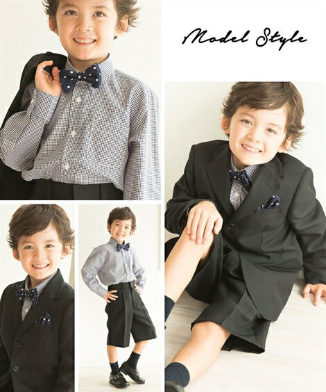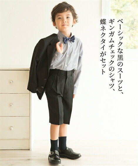 スーツ フォーマル キッズ 卒業式 3点セット ジャケット + シャツ パンツ 男の子 子供服 ウェア 黒+紺ギンガム+黒 身長140cm ニッセン